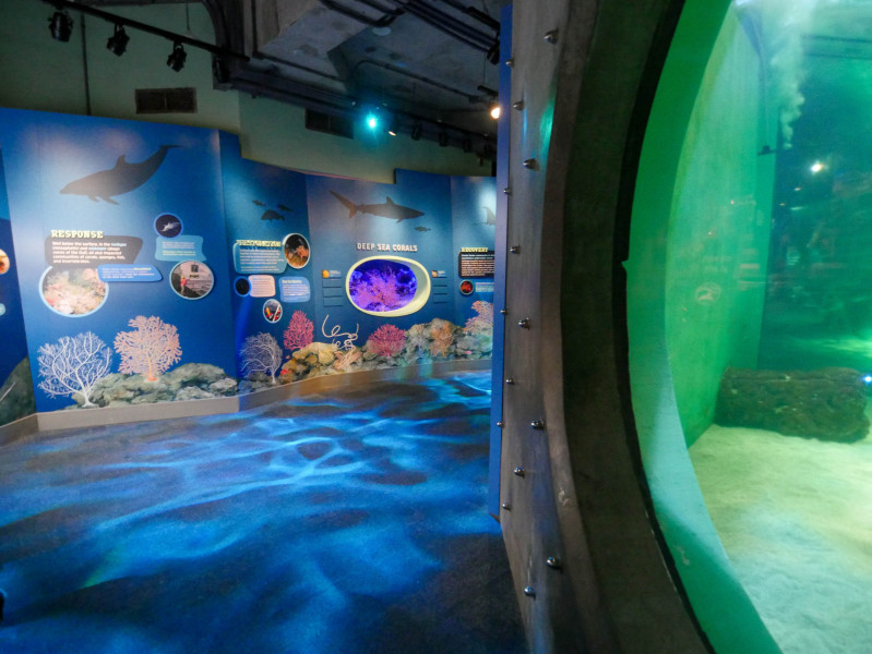 - Educational panels that provide insight into Gulf marine life at different depths, the impact of the Deepwater Horizon oil spill, and the vital restoration efforts currently underway.